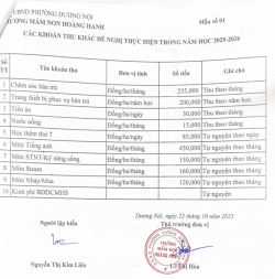 Các khoản thu năm học 2025-2026